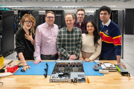 In December, Queen’s announced that it recruited Ian Karlin (centre in photo at right, with Ryan Grant and graduate students Brooke Henderson, Ethan Shama, Shaina Smith, Ethan Shama, and Ali Farazdaghi from Ryan's lab: Queen's University) to help build its supercomputer. Karlin’s arrival at Queen’s follows years of working on the leading edge of advanced computing, most recently as a principal engineer at chip giant NVIDIA.