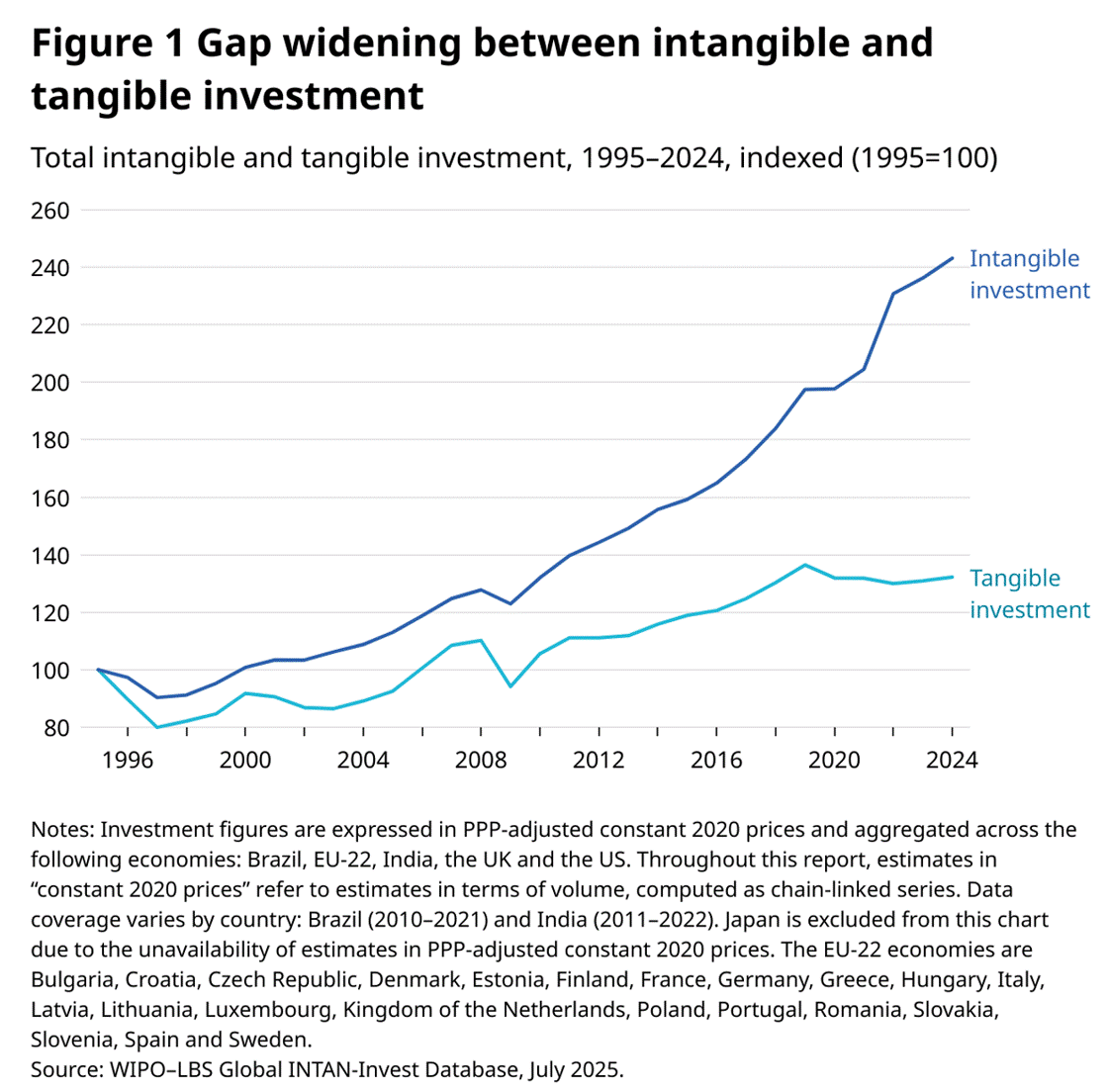 Globally, investment in intangible assets grew three times as fast as investment in tangible assets since 2008, a trend that has only accelerated since 2020.